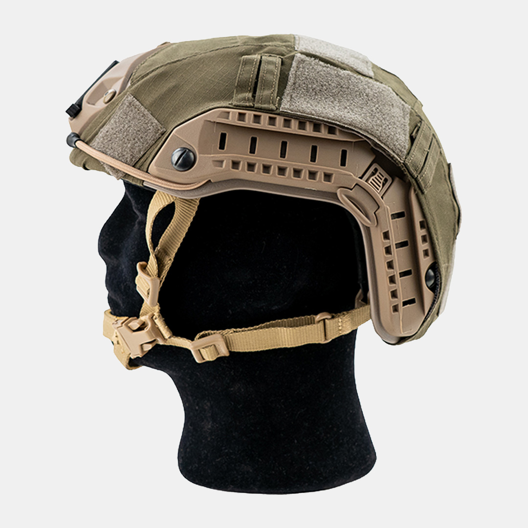 Hergestellt aus leichtem, robustem Material sitzt der Helmüberzug sicher und bleibt kompatibel mit NVG-Halterungen, Seitenrails, Headset-Adaptern oder helmgetragenen Kameras.