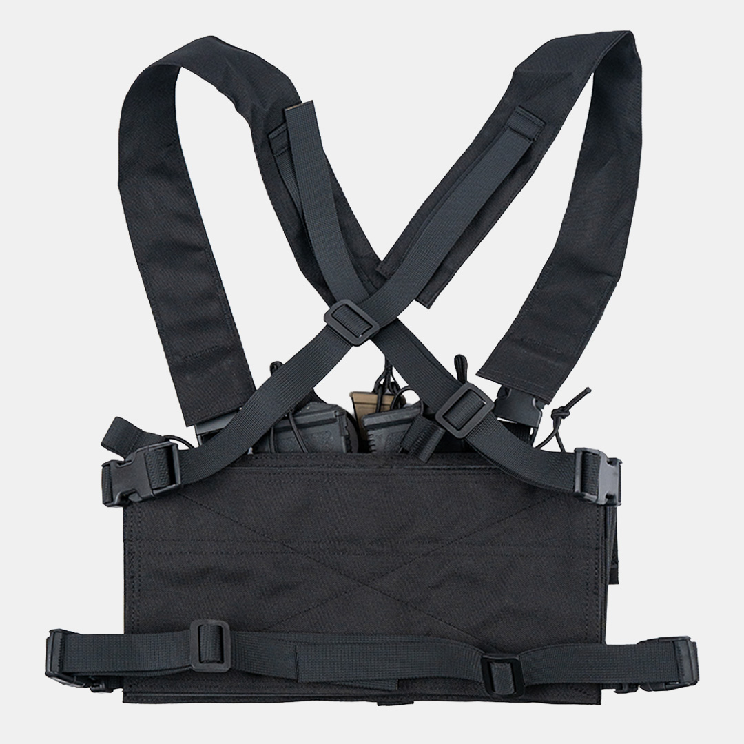 Das komfortable X-Harness sorgt für einen stabilen Sitz am Körper und eine gleichmäßige Gewichtsverteilung. Durch das leichte und offene Design ist der Chest Rig atmungsaktiver als ein Plate Carrier und bietet hohen Tragekomfort bei längeren Spielen.